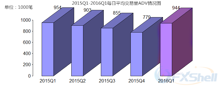 ▪Q1平均每日外汇交易量(ADV)944000笔,比2015年Q4增加了21%,同比减少了1%。