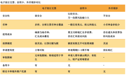 什么是电子旅行支票?电子旅行支票是一张由境外机构发行的、以外币记账的、在境外发卡机构受理网络使用的储值卡产品。该服务在境外市场有着广泛而成功的实践,并衍生出一系列旅行支付产品,可充分服务于消费者跨境支付的方方面面。比如万事达卡电子旅行支票在卡片介质和支付功能上与我们已熟知的万事达卡品牌的信用卡、借记卡等传统支付卡没有太大差别。它不仅能在境外数千万家商户、网站、ATM等受理环境中进行支付,在技术上对Apple Pay等新兴电子支付方式也能够完全实现兼容。与传统的外币现钞、信用卡等境外支付方式相比,电子旅行支票有四大优点(见附表)。
