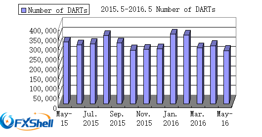 日本外汇经纪商Monex Group今日发布了2016年5月运营报告,数据显示Monex集团5月全球日均收入交易(DARTS)274,230笔,较于4月的299,629笔减少8.5%,同比减少14%。微幅下降态势继续,目前已跌至近一年来最低水平。