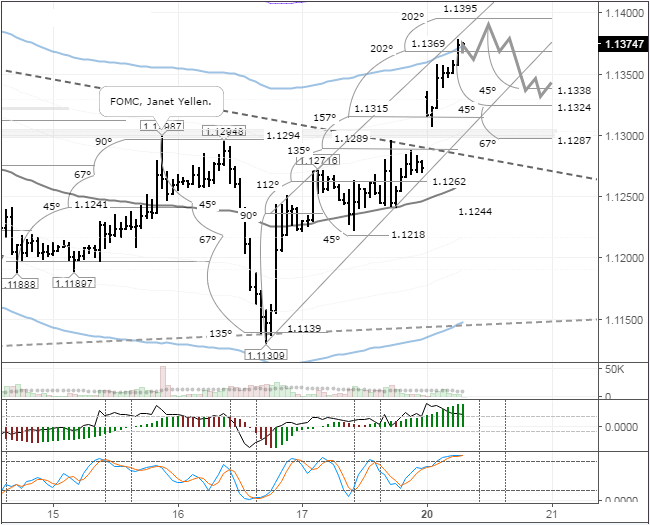 日内预测:最低 – 1.1308,最高 – 1.1391,收价 – 1.1342。