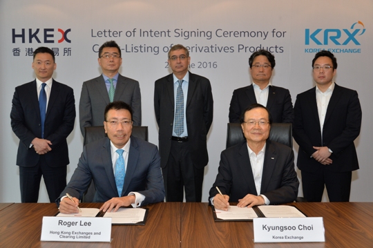 香港交易所特为此在港举行签署仪式,由该所市场主管李国强与韩国交易所董事长崔庚洙共同签订该意向书;两家交易所多名代表亦有出席见证签署仪式。