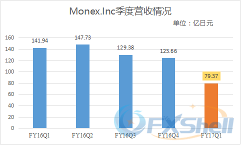 Monex集团(Monex Group)今日公布旗下全资子公司Monex,Inc.2017财年第一季度财报。在集团营收连续四个月出现减少的情况下,子公司Monex的情况也不乐观。各项数据与去年同期成绩相比,出现明显的减少,其中营业利润同比减幅达73%。
