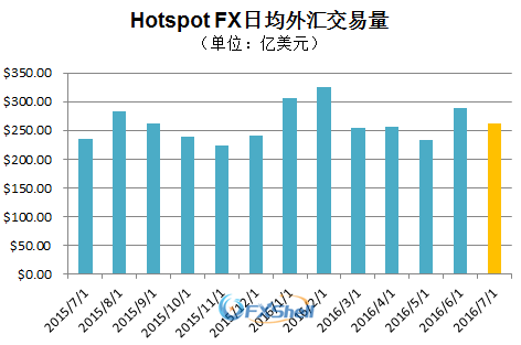 Hotspot FX 7月外汇交易总量达到5510亿美元。7月21个交易日,Hotspot FX日均交易量为262亿美元。