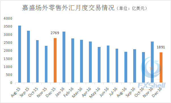 在大选月借势扭转衰减局面后,美国零售外汇经纪商嘉盛(GCAP)12月场外零售外汇交易量跌至近一年来最低值,环比骤减26.4%,同比减少3成。机构部分情况好于零售,对此,FXShell已在本月初做过详细报道。