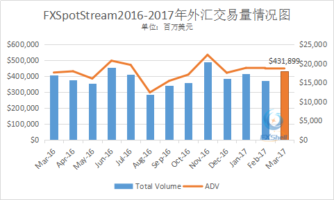 据汇讯网持续报道,提供多银行外汇集合报价服务的FXSpotStream3月交易量较2月有所回升。其中3月总交易量为4319亿美元,较2月增加了15%。日均交易量为187.8亿美元,环比增加0.3%,同比增加了6.4%。
