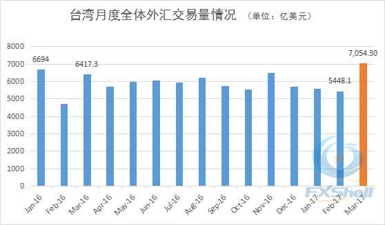 台湾中央银行今日发布了3月份的外汇市场情况。