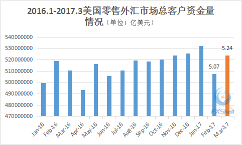 据汇讯网追踪报道,美国商品期货交易委员会(CFTC)日前发布数据,美国零售外汇市场在经历福汇离开首月的骤减后,本月稳中有升,3月总零售外汇客户资金量达5.24亿美元,较上月的5.07亿美元增长3.4%↑。