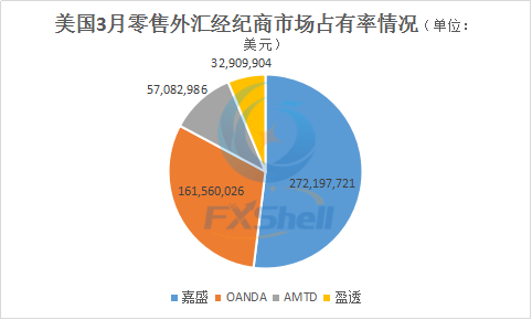 具体来看,嘉盛3月客户资金量为272,197,721美元,稳居第一。OANDA以161,560,026美元位居次席。AMTD是57,082,986美元,盈透则为32,909,904美元。