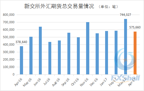 外汇期货成交量为575,660笔,环比下滑23%↓,同比增长52%↑;