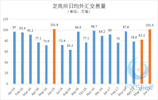 数据统计 芝商所6月日均外汇交易量再次突破百万笔 达一年来次高峰 作者 Su - 2017-7-6 10:09:04 2752 据汇讯网(www.fxshell.com)追踪统计,2017年6月,美国衍生品交易市场芝加哥商品交易所(CME Group)的外汇日均交易量(ADV)达到101.4万笔,环比增长23.2%↑,与去年同期基本持平。 此外,这个数据也是芝商所上半年外汇日均交易量的最高值,2016年以来第二次突破百万笔、仅次于去年6月的101.8万笔。■ 版权声明 :本站文章未经授权不得转载。对已获授权的媒体、机构、个人,在使用时须注明来源“汇讯网”。