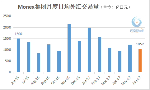 日本外汇经纪商Monex集团(Monex Group)日前更新其6月外汇交易数据,其中,6月Monex日均外汇交易量为1052亿日元,较上月有所下降。