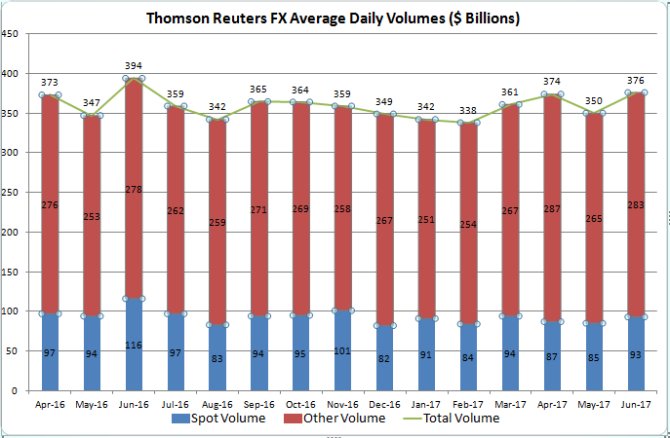 6月汤森路透外汇交易具体数据如下: