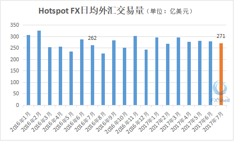 7月Hotspot FX日均外汇交易量为271亿美元,较上月279.1亿美元降低2.9%↓,较去年同期的262.4亿美元增长3.28%↑。■
