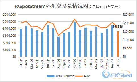 具体方面,7月FXSpotStream外汇总交易量为3686亿美元,较6月4468亿美元减少17.5%↓,与去年同期的4126亿美元相比减少10.6%↓。