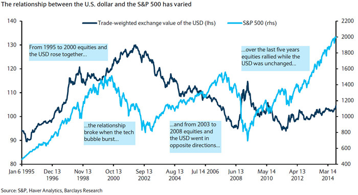 例如,在过去的几年中,美元与S&P500(标准普尔500)指数并不总是正相关的。