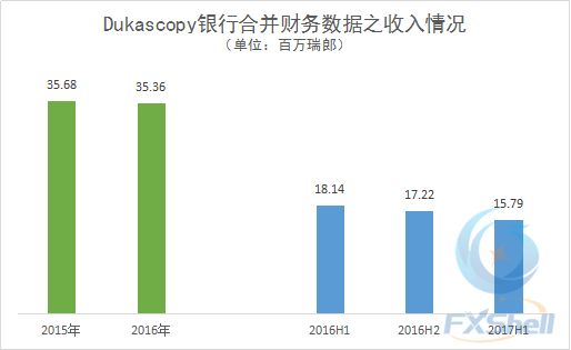瑞士外汇经纪商Dukascopy银行的2017年上半年财务报告显示,其营收较去年同期及2016年下半年业绩均有减少。