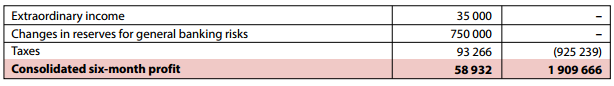 • 就综合利润而言,尽管上半年较去年同期多了一项额外收入,但由于税费大增以及针对常规银行风险的储备金变动,上半年综合利润为5.9万瑞郎(约合6.1万美元),比去年同期减少了约185万瑞郎(约合192万美元)。
