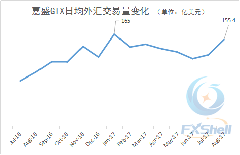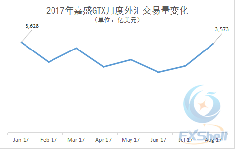 2017年8月,嘉盛集团旗下的机构外汇交易平台GTX的日均外汇交易量及总交易量均有较大幅度增长。