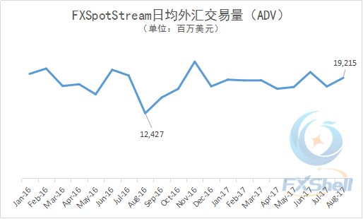 2016年8月FXSpotStream 日均外汇交易量环比猛减36.8%至年内最低