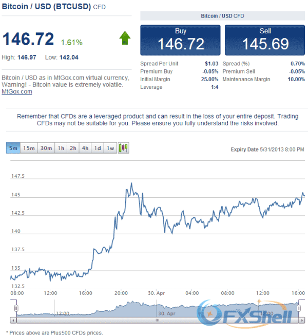 不同于其他的比特币交易,Plus500的比特币差价合约虽然报价来源于最大的比特币交易社区MtGox,但其是作为差价合约形式提供给投资者,此外,Plus500还提供最高4倍的交易杠杆(相当于25%的初始保证金)。