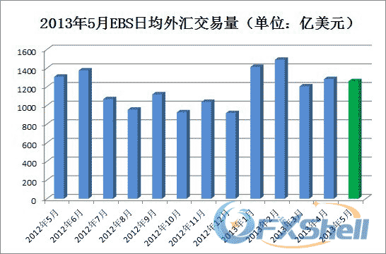 全球最大的货币经纪系统ICAP公布了旗下电子外汇交易平台EBS的外汇交易数据。数据显示今年5月份即期外汇日均交易量为1260亿美元,相比4月份下降2%,相比去年同期下降4%。