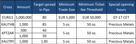 丹麦多资产交易商盛宝银行(Saxo Bank)宣布将新增四种可交易货币对,分别是:EURILS (欧元兑以色列新谢克尔)、XAUTRY(黄金/土耳其里拉)、XAUTHB(黄金/泰铢)和XPTZAR(白金/南非兰特)。