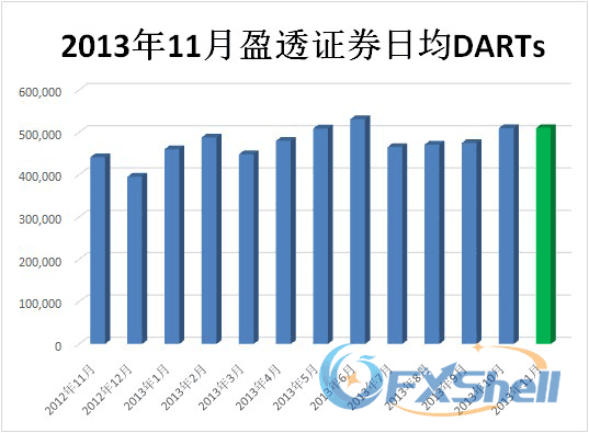美国上市电子零售券商盈透证券日前公布了其最新的电子交易数据。数据显示今年11月,盈透证券日均执行51万笔收入交易(DARTs),同比增长16%,环比持平。