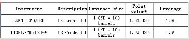Dukascopy推出的原油及相关指数差价合约交易规则分别如下: