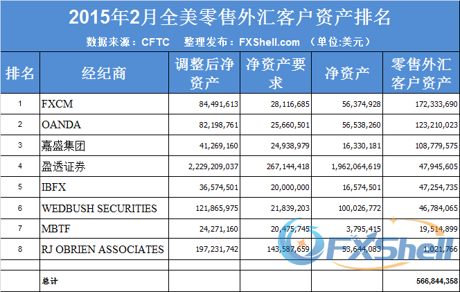 美国期货交易委员会(CFTC)发布了截止2月28日的全美零售外汇客户资产状况,根据披露的数据显示,福汇(FXCM)、OANDA、嘉盛集团继续成为全美最大的零售外汇经纪商。