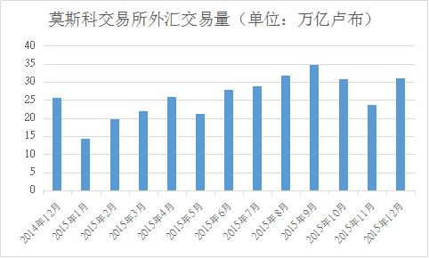 12月,俄罗斯外汇市场的日均交易量为14062亿卢布(合202亿美元),环比增长18.5%,而2014年同期则为11641亿卢布。