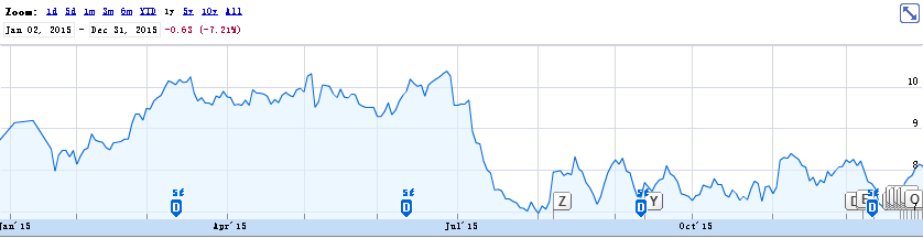 2015年对于嘉盛和大多数经纪商来说是难熬的一年,但也是在这一年,嘉盛集团通过收购、丰富交易品种等手段来继续扩张其业务范围,将公司发展壮大,荣登《财富》发展百强。经过一年的起起伏伏,嘉盛未来的发展依然值得期待。附图:嘉盛集团2015年股价走势