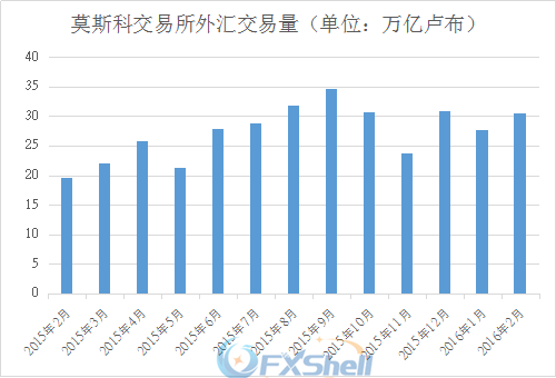 莫斯科交易所(MOEX)3月2日发布了2016年2月交易所运营数据,其数据显示其外汇交易总量较1月环比有所增长,而日均交易量则有小幅下降。