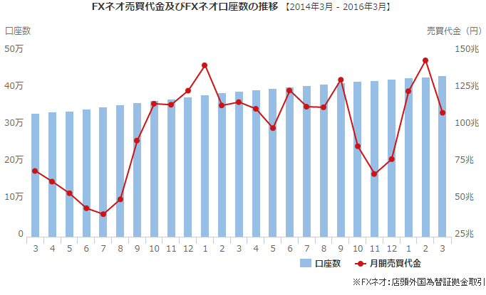 - 截止2016年3月底,GMO Click证券外汇账户数量已增加至328,404个,减少了近10万个。